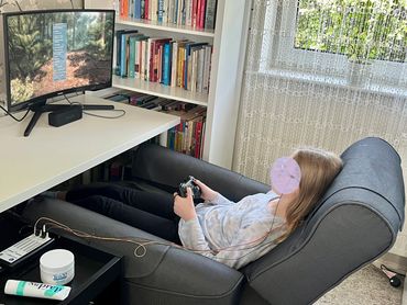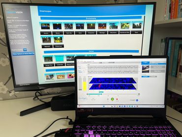 The brain can’t directly see its own activity, so in order to give it feedback on its performance, the signal is processed via the computer programme and then it is presented to the brain in the form of a video or a game. We just attach a few sensors to your head and they register the brain activity from these places. You simply watch an animation or a video of your choice, while the brightness, colour intensity, screen size and volume change on the screen.